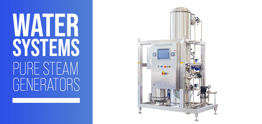 The clean steam generators produce pure and pyrogen free steam, in accordance with the latest international pharmacopoeias guidelines (EP, BP, FDA, cGMP) for any pharmaceutical application, such as steilisation of storage and solution tanks, sterilization of distribution loops, heating of autoclaves, sterilization of filling and packing equipment.